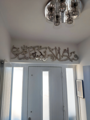 Surah Ikhlas 3D Arabic Calligraphy Wall Art is a stunning handcrafted stainless steel masterpiece, exclusively designed to bring grace and spirituality to your home. Featuring Bismillah and Surah Ikhlas, this wall decor is a perfect blend of tradition and modern craftsmanship.
